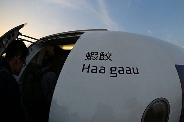 今天的晚霞不錯,連地勤人員也不禁用手機拍攝一番。我乘坐的HKExpress航班叫“蝦餃”,不知何故遲遲仍未起飛,最後足足遲了半小時,飛機才向跑道出發。看過安全示範,上上洗手間,準備小睡一會,但機長已發出即將降落的廣播。飛機按原定時間降落,當地天氣不錯,降落前看見台中的夜景真的很美,機場比較細小,飛機也細小,所以很快便可以落機步向海關。職員再三提醒要出示台灣簽證並在上面簽署,幾分鐘後便順利過關,寄倉行李亦在冷清清的運輸帶跌出來。