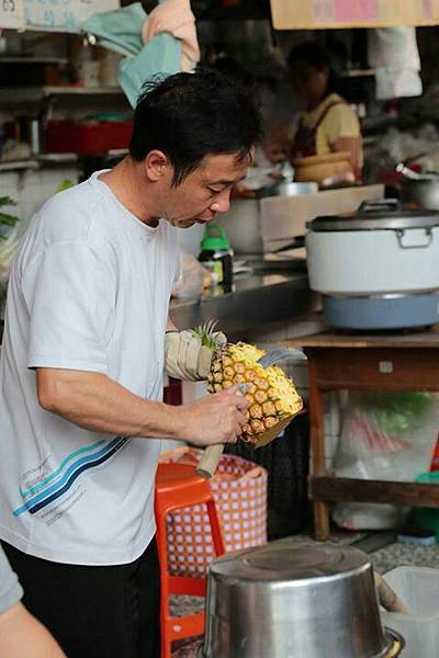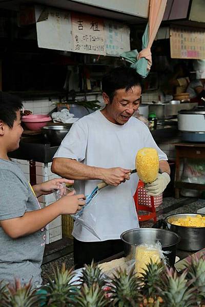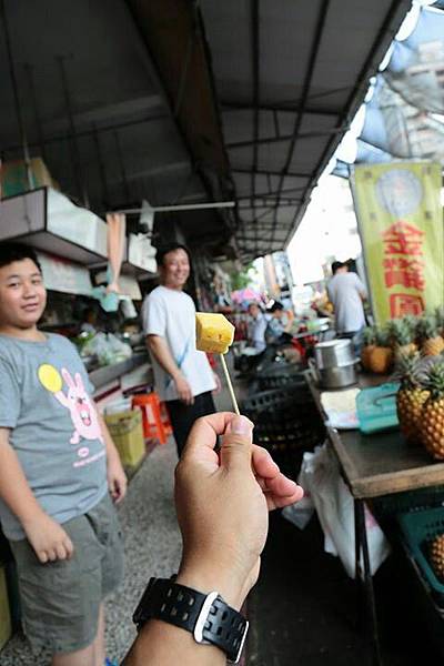 在生果區,我被批菠蘿的父子吸引著,他們以熟練的手法,合作無間的節奏,把一個又一個香甜的鳳梨送到客人手中。當我拍攝得入神之際,店主爸爸竟向我遞上一串鮮甜的鳳梨,這種久違了的人情味,在香港難以找到。