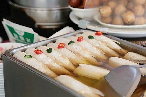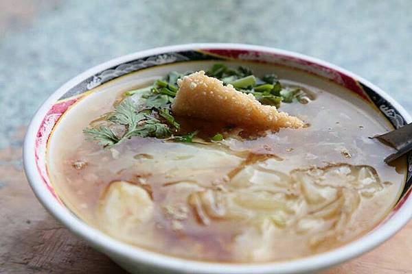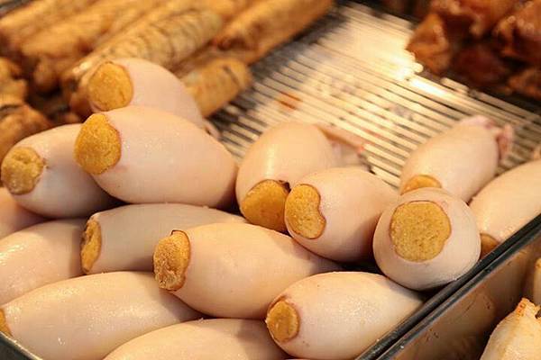 鳳梨檔旁邊就是魷魚羮檔,此時,我的肚子開始有點餓了,正好需要吃點暖胃的東西。叫了一碗魷魚羹,老闆娘更額外贈送一條炸得金黃香脆的東西,雖然心知不妙,但老闆娘盛意拳拳,我又怎能掃興呢?